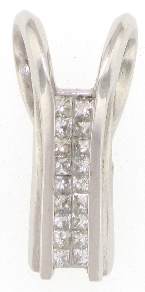 Invisible set double row princess cut diamonds in an elegant bar setting.